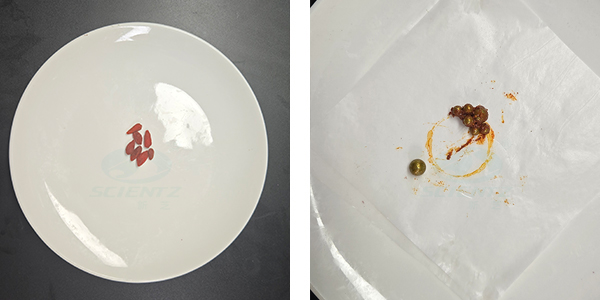 实验目的:验证新芝生物高通量组织研磨器SCIENTZ-48在常温干磨条件下,能否高效破碎干枸杞,避免粘黏结块,获得色泽自然、粒度均匀的红色细腻粉末,满足多糖提取、类胡萝卜素分析、质量检测及保健食品开发等后续应用的要求。